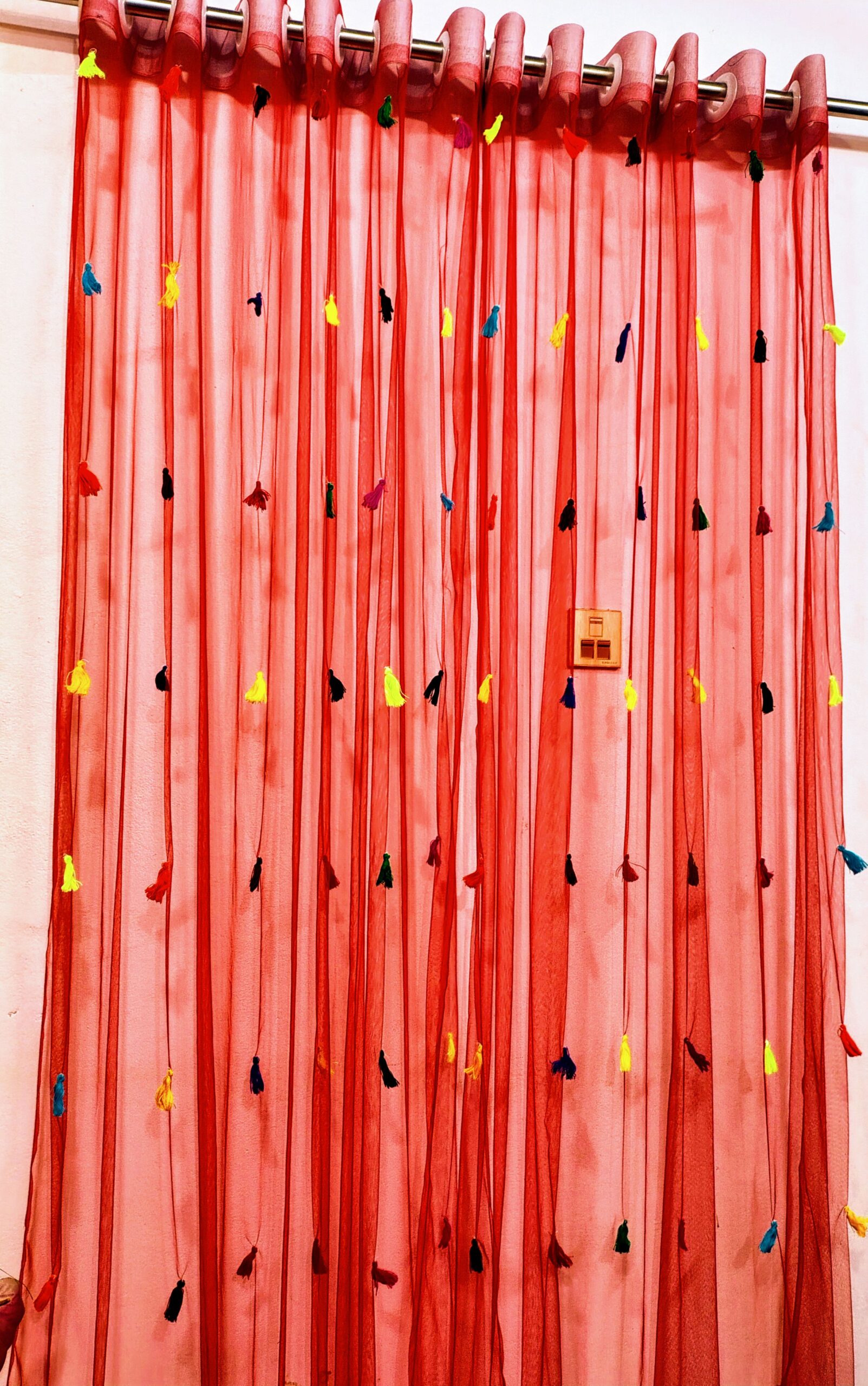 ঘরের সৌন্দর্য বাড়াতে নতুন মাত্রা যোগ করুন এই প্রিমিয়াম Soft Net Transparent Tarsel পর্দা দিয়ে!